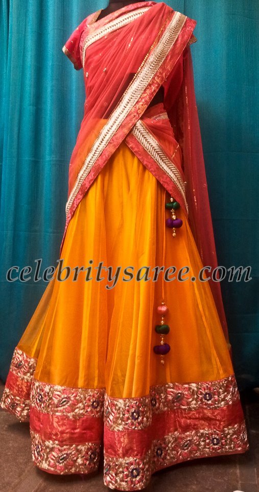 Net Sarees न ट क स ड Buy Net Sarees Online At Best Prices At Flipkart - Half sarees are combination of two different types of fabrics, design and color and these 2 parts are stitched by using different types of lace or pattern by stitching machine.
